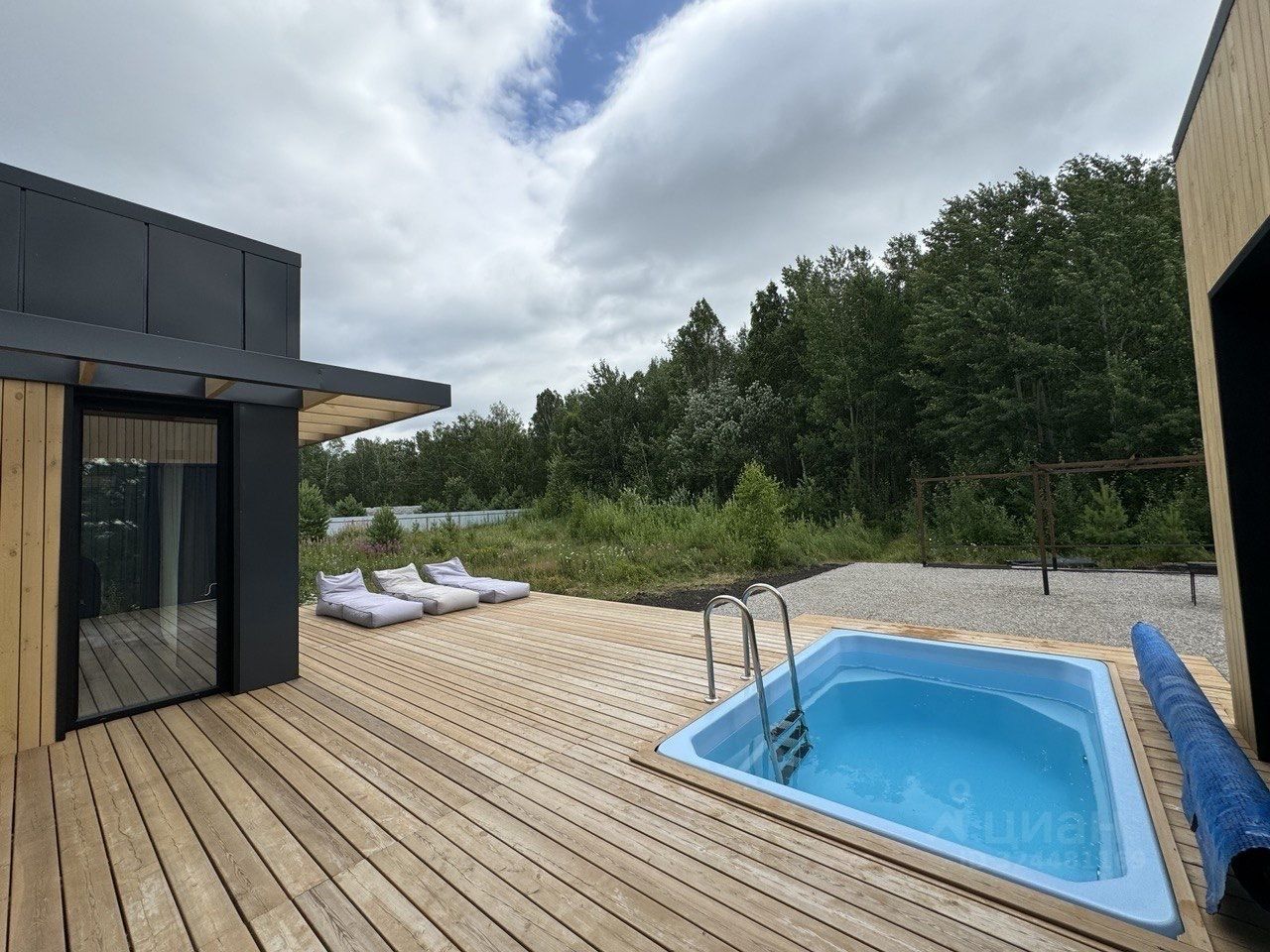 В доме расположена ФИНСКАЯ САУНА с большими панорамными окнами, после которой любители контраста могут облиться холодной водичкой из отливного ведра