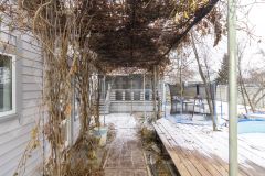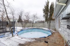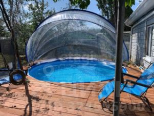 Бассейн: Каркасный бассейн на 20 м с подогревом, тентом и фильтром. Углублен в землю. Рядом — батут