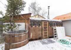Гостевой дом: Отдельное здание 35 м² с санузлом, спальней, отапливаемой террасой и погребом.