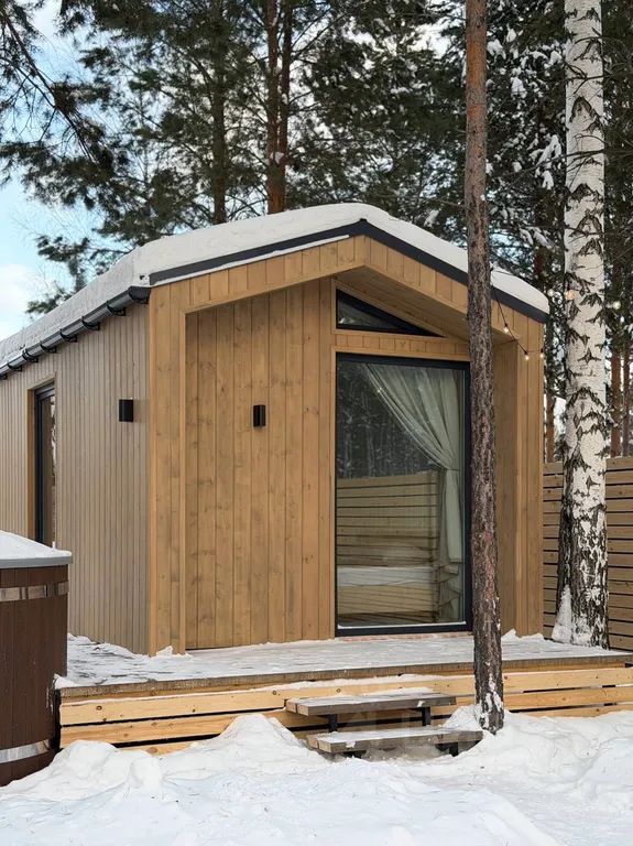 Приготовьте вкусный ужин на мангале, расслабьтесь в теплой воде купели, посмотрите классный фильм на проекторе, насладитесь свежим воздухом и белоснежным снегом!