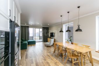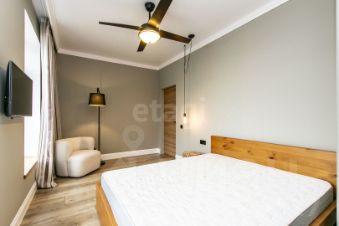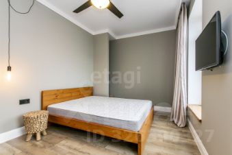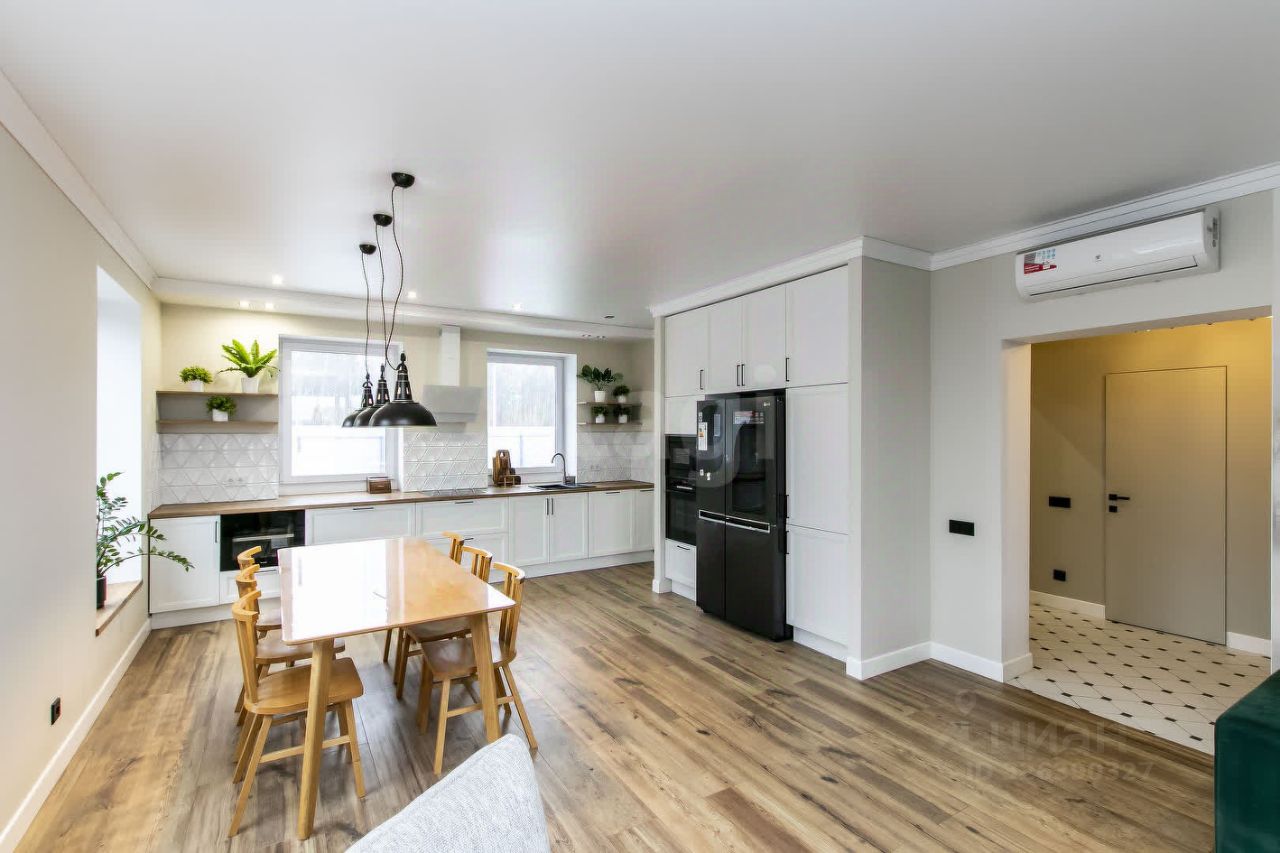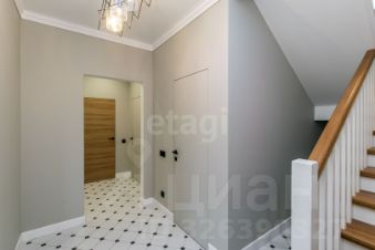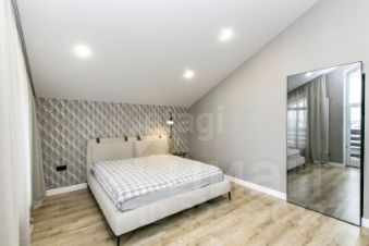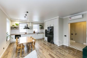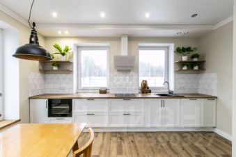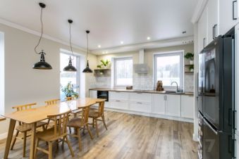 Мебель и отделка: Большая часть мебели выполнена из натурального дуба. Кухонный гарнитур немецкого производства с современной встроенной техникой (варочная панель, холодильник, винный шкаф, микроволновая печь). Гостевая спальня укомплектована сосновой кроватью и креслом в стиле букле. Во взрослой спальне дизайнерская кровать и тумбы из ореха. Тумбы в ванной комнате сделаны по индивидуальному дизайн-проекту. По всему дому установлена система теплый пол. На втором этаже установлены дизайнерские радиаторы.