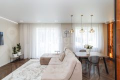 • Полностью укомплектован техникой и мебелью: кухонный гарнитур, посудомоечная машина,варочная панель, телевизор, стиральная машина, холодильник, микроволновая печь, двуспальная кровать и диван.