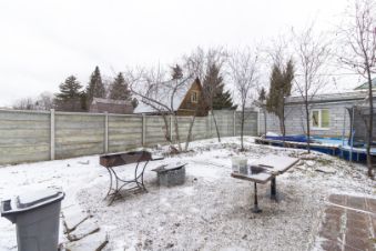Благоустроенная территория с зелеными насаждениями (взрослые яблони, вишни, кедр), фаер-зоной и свободным местом для ваших идей.