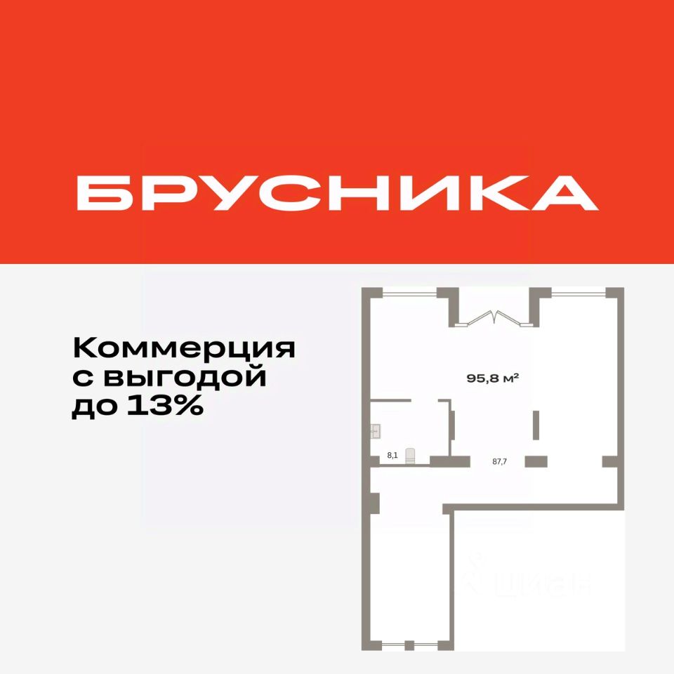 Помещение свободного назначения на 1 этаже, общая площадь 95.82 кв.м., без отделки. Стоимость помещения 20,690,000 руб., цена за кв.м 215,925 руб.