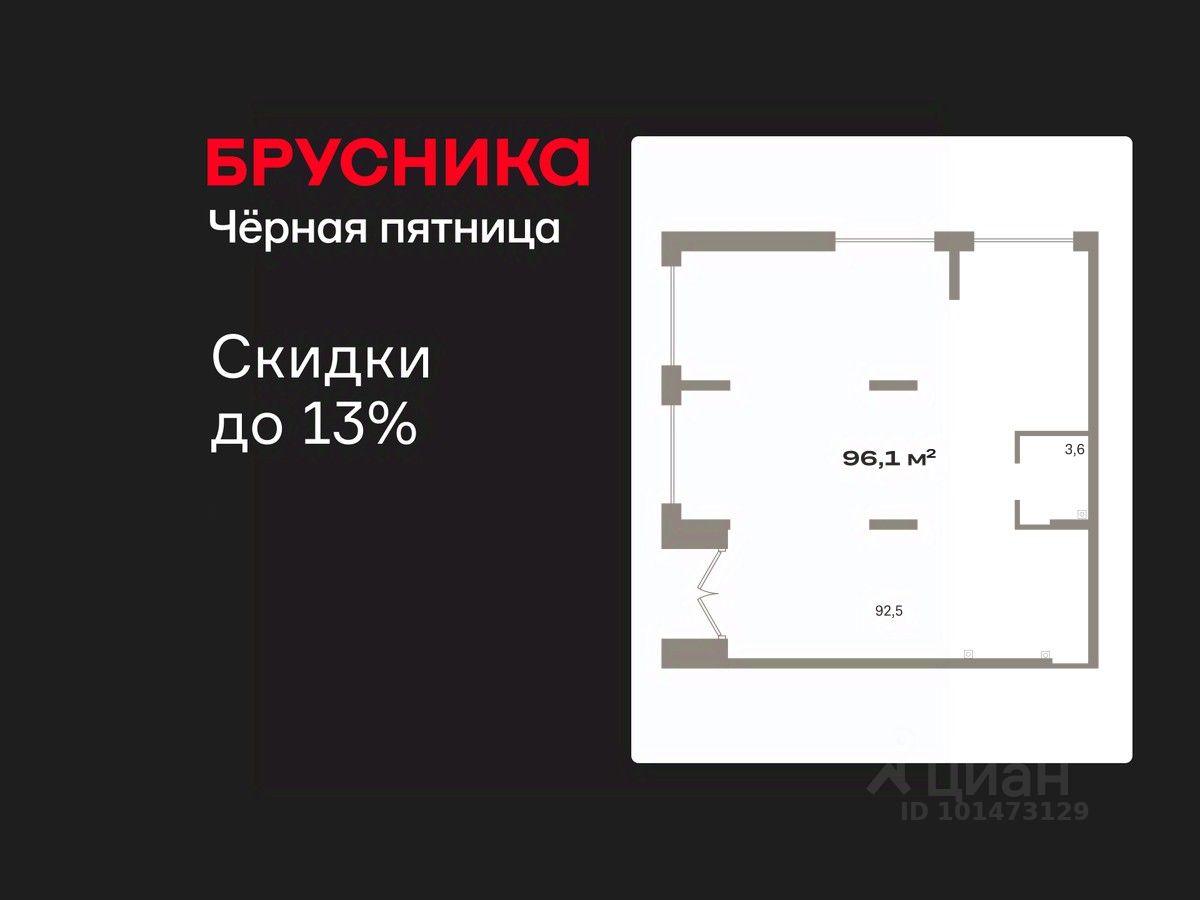 Помещение свободного назначения на 1 этаже, общая площадь 96.07 кв.м., без отделки. Стоимость помещения 19,710,000 руб., цена за кв.м 205,162 руб.