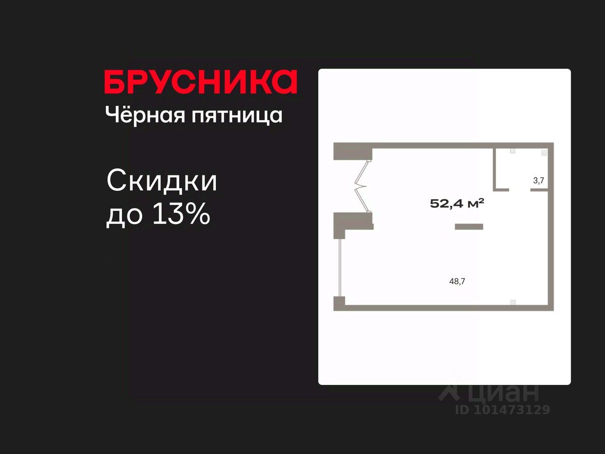 Помещение свободного назначения на 1 этаже, общая площадь 52.43 кв.м., без отделки. Стоимость помещения 10,980,000 руб., цена за кв.м 209,422 руб.