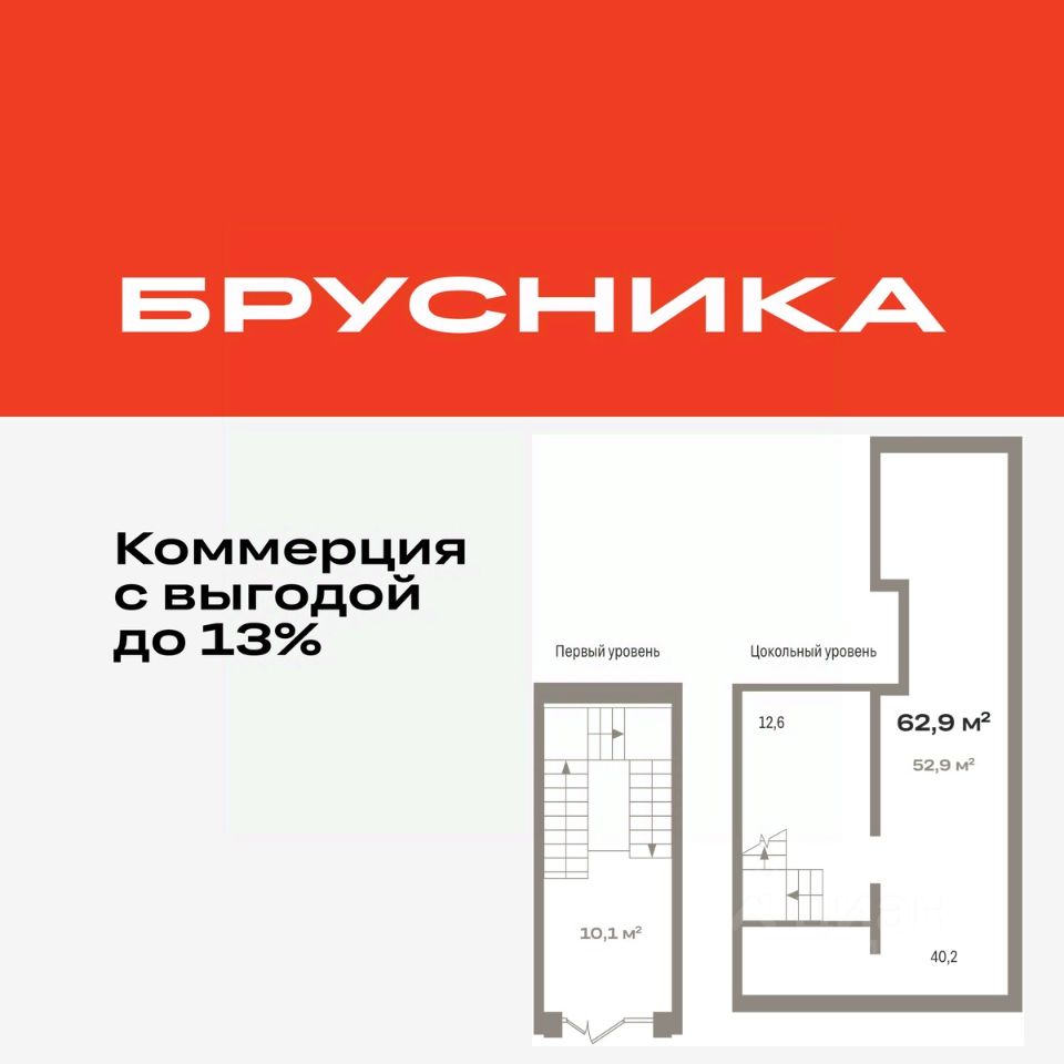 Помещение свободного назначения на -1 этаже, общая площадь 62.93 кв.м., без отделки. Стоимость помещения 10,890,000 руб., цена за кв.м 173,049 руб.