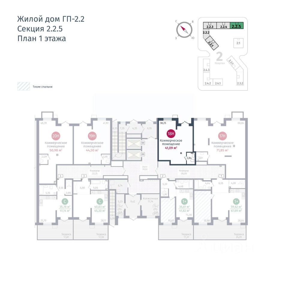 Предлагаем коммерческую недвижимость в доме ГП-2.2 общей площадью: 41,09 кв.м. Жилой комплекс с собственным лесопарком, расположенный в живописном районе Тюменской слободы, в 5 минутах езды от Московского тракта. Архитекторы спроектировали микрорайон по принципу "зеленого каркаса". Другая фишка проекта — спальни со звукоизоляцией. Наши проектировщики разработали ряд технологических решений, призванных поглощать как ударный, так и воздушный шум. Больше света: дома не соединены между собой, чтобы не создавать эффект "двора-колодца". Это позволит наполнить дворы солнцем и сохранить в каждой квартире максимум света. Сити-хаусы на 1 этаже - квартиры с террасами, отдельным входом и высотой потолка 3,12 м. 7 кварталов, спроектированных по принципу "дворы без машин", направлены на создание комфортной, городской среды. Этажность домов переменная: от 7 до 17 этажей.