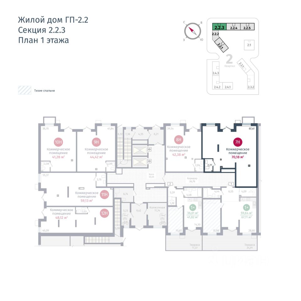 Предлагаем коммерческую недвижимость в доме ГП-2.2 общей площадью: 70,18 кв.м. Жилой комплекс с собственным лесопарком, расположенный в живописном районе Тюменской слободы, в 5 минутах езды от Московского тракта. Архитекторы спроектировали микрорайон по принципу "зеленого каркаса". Другая фишка проекта — спальни со звукоизоляцией. Наши проектировщики разработали ряд технологических решений, призванных поглощать как ударный, так и воздушный шум. Больше света: дома не соединены между собой, чтобы не создавать эффект "двора-колодца". Это позволит наполнить дворы солнцем и сохранить в каждой квартире максимум света. Сити-хаусы на 1 этаже - квартиры с террасами, отдельным входом и высотой потолка 3,12 м. 7 кварталов, спроектированных по принципу "дворы без машин", направлены на создание комфортной, городской среды. Этажность домов переменная: от 7 до 17 этажей.