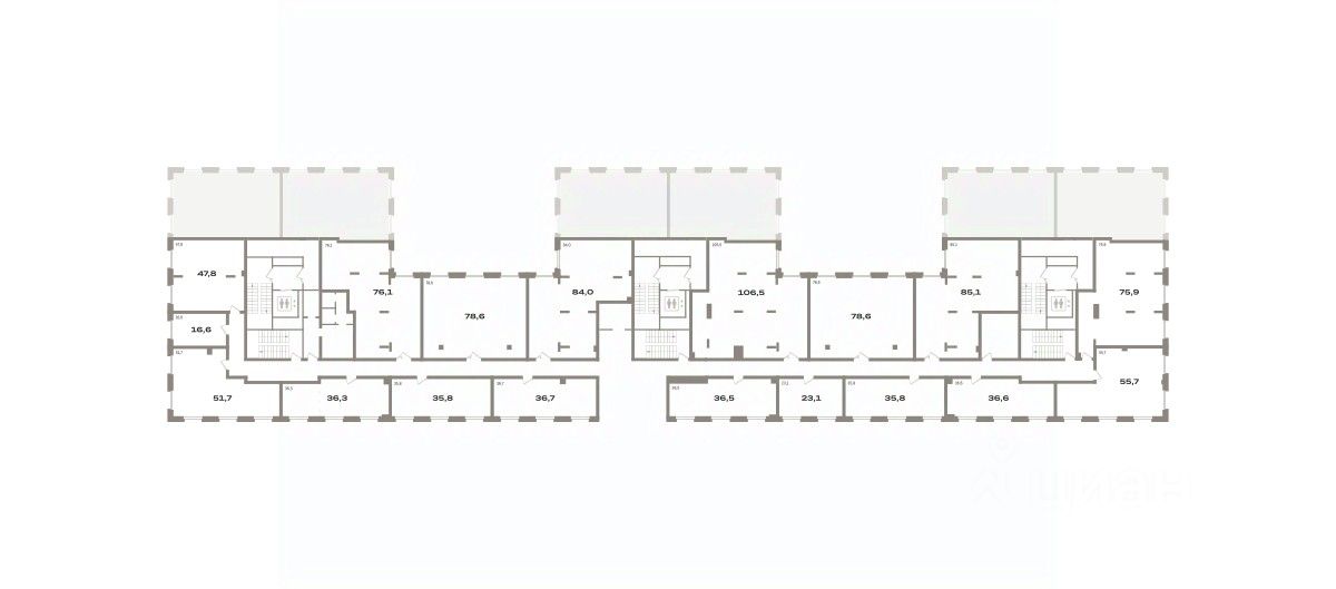 Помещение свободного назначения на 2 этаже, общая площадь 76.1 кв.м., без отделки. Стоимость помещения 20,300,000 руб., цена за кв.м 266,754 руб.