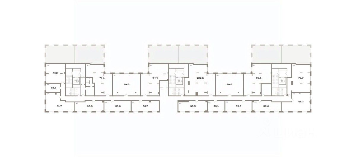Помещение свободного назначения на 2 этаже, общая площадь 106.5 кв.м., без отделки. Стоимость помещения 27,600,000 руб., цена за кв.м 259,154 руб.
