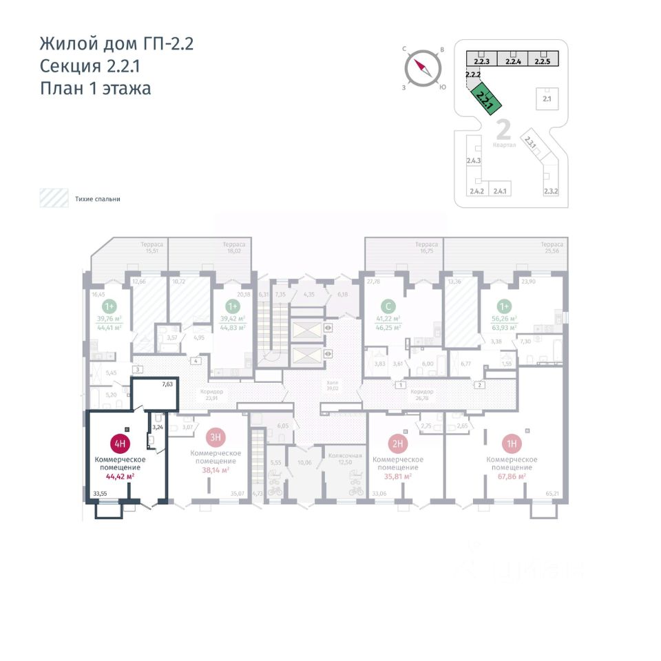 Предлагаем коммерческую недвижимость в доме ГП-2.2 общей площадью: 44,42 кв.м. Жилой комплекс с собственным лесопарком, расположенный в живописном районе Тюменской слободы, в 5 минутах езды от Московского тракта. Архитекторы спроектировали микрорайон по принципу "зеленого каркаса". Другая фишка проекта — спальни со звукоизоляцией. Наши проектировщики разработали ряд технологических решений, призванных поглощать как ударный, так и воздушный шум. Больше света: дома не соединены между собой, чтобы не создавать эффект "двора-колодца". Это позволит наполнить дворы солнцем и сохранить в каждой квартире максимум света. Сити-хаусы на 1 этаже - квартиры с террасами, отдельным входом и высотой потолка 3,12 м. 7 кварталов, спроектированных по принципу "дворы без машин", направлены на создание комфортной, городской среды. Этажность домов переменная: от 7 до 17 этажей.