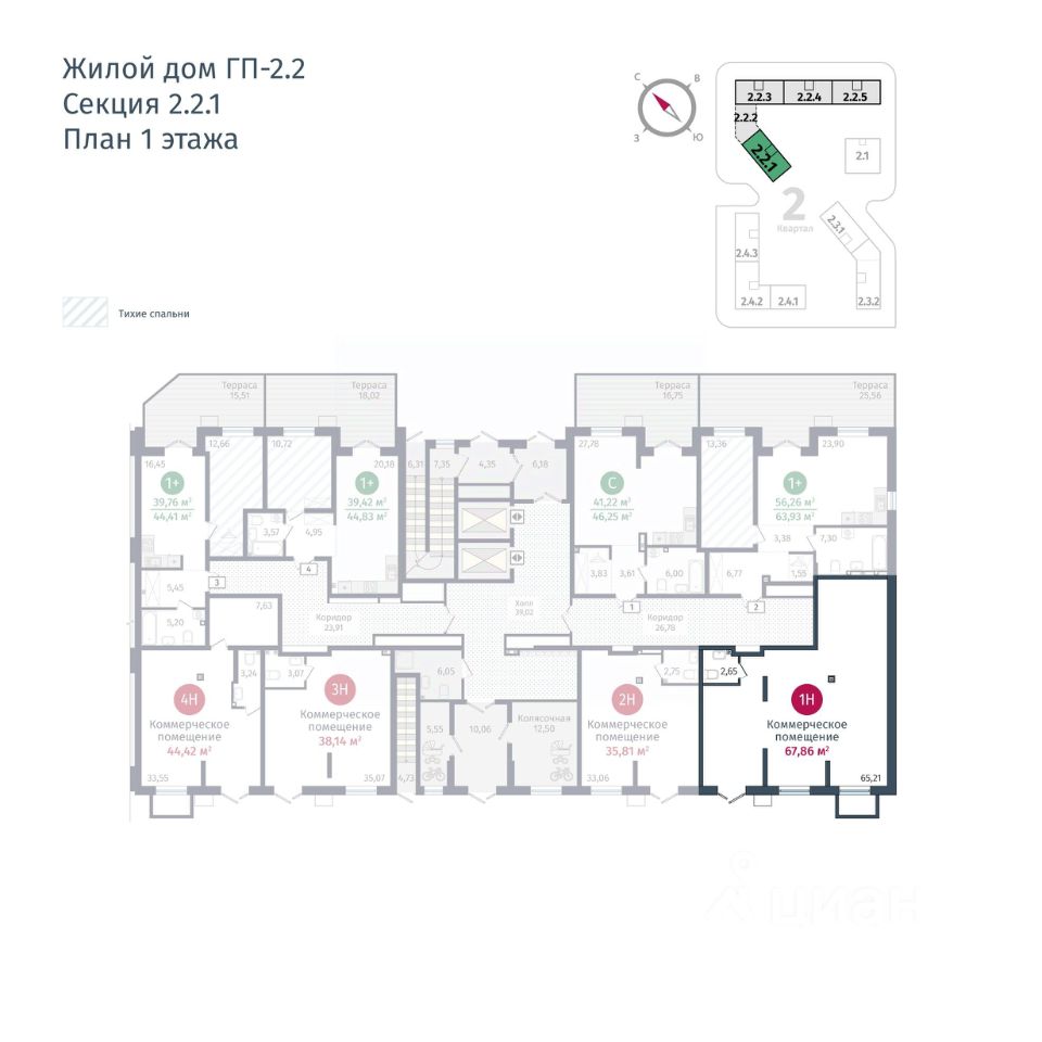 Предлагаем коммерческую недвижимость в доме ГП-2.2 общей площадью: 67,86 кв.м. Жилой комплекс с собственным лесопарком, расположенный в живописном районе Тюменской слободы, в 5 минутах езды от Московского тракта. Архитекторы спроектировали микрорайон по принципу "зеленого каркаса". Другая фишка проекта — спальни со звукоизоляцией. Наши проектировщики разработали ряд технологических решений, призванных поглощать как ударный, так и воздушный шум. Больше света: дома не соединены между собой, чтобы не создавать эффект "двора-колодца". Это позволит наполнить дворы солнцем и сохранить в каждой квартире максимум света. Сити-хаусы на 1 этаже - квартиры с террасами, отдельным входом и высотой потолка 3,12 м. 7 кварталов, спроектированных по принципу "дворы без машин", направлены на создание комфортной, городской среды. Этажность домов переменная: от 7 до 17 этажей.