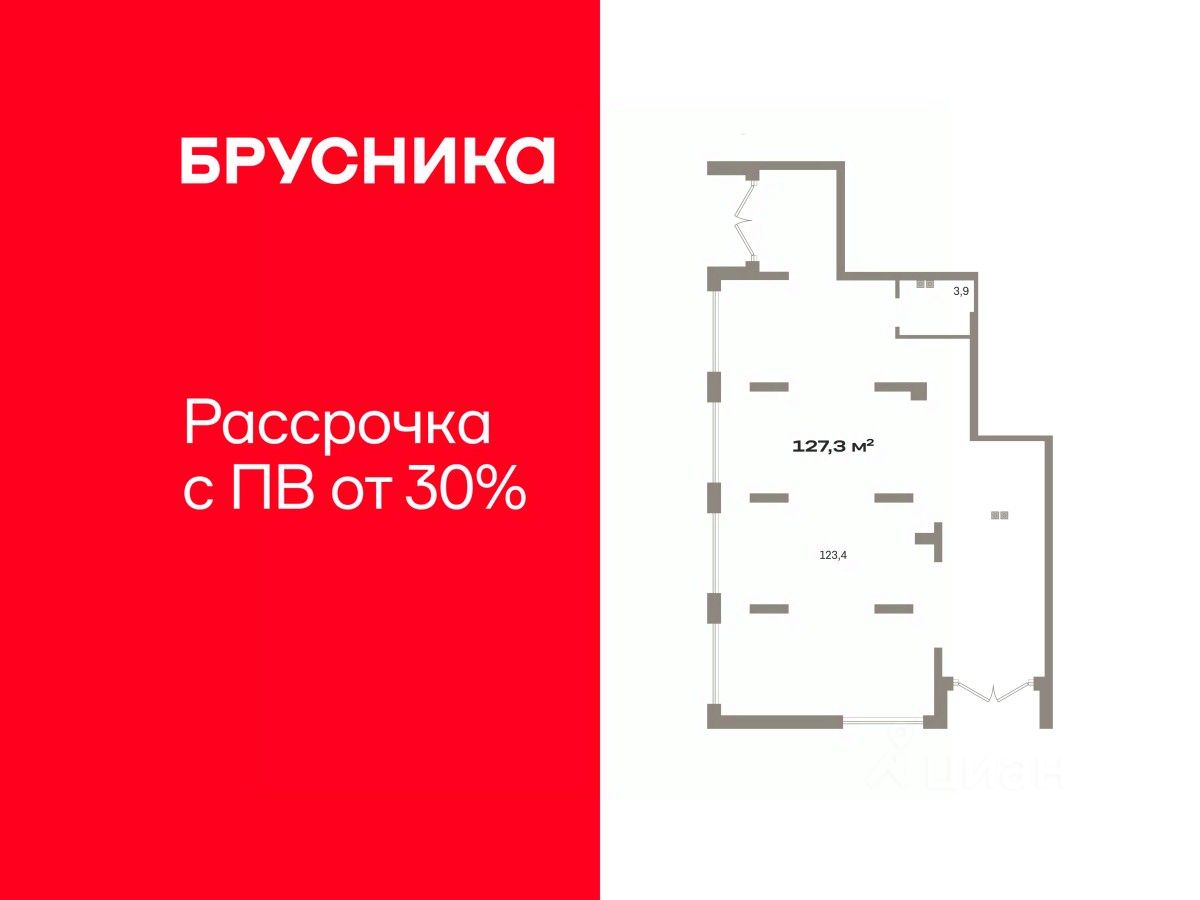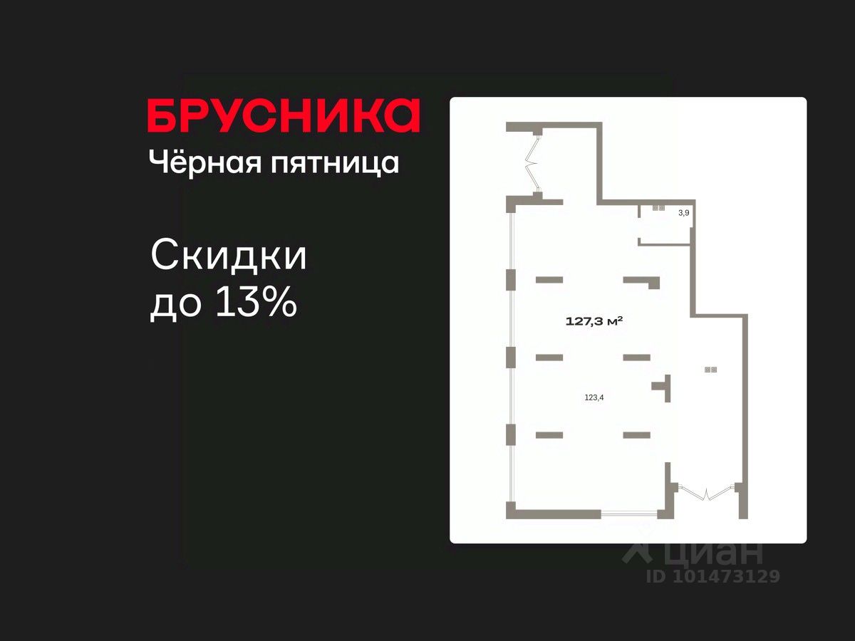 Помещение свободного назначения на 1 этаже, общая площадь 127.29 кв.м., без отделки. Стоимость помещения 25,690,000 руб., цена за кв.м 201,822 руб.