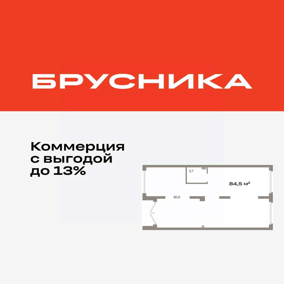 Помещение свободного назначения на 1 этаже, общая площадь 84.54 кв.м., без отделки. Стоимость помещения 17,340,000 руб., цена за кв.м 205,110 руб.