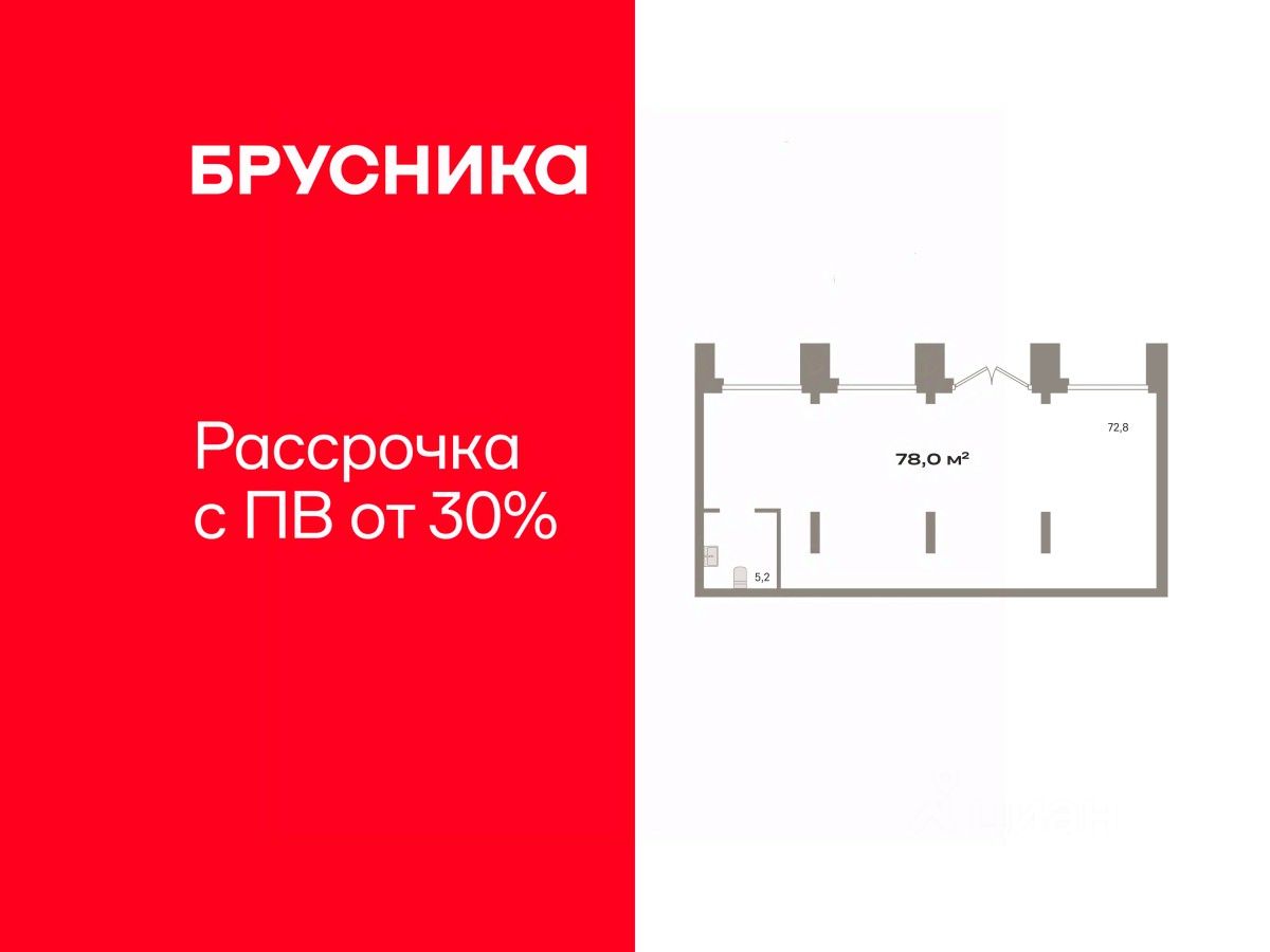 Помещение свободного назначения на 1 этаже, общая площадь 78 кв.м., без отделки. Стоимость помещения 20,010,000 руб., цена за кв.м 256,538 руб.