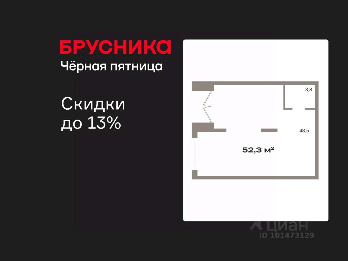 Помещение свободного назначения на 1 этаже, общая площадь 52.27 кв.м., без отделки. Стоимость помещения 12,110,000 руб., цена за кв.м 231,681 руб.