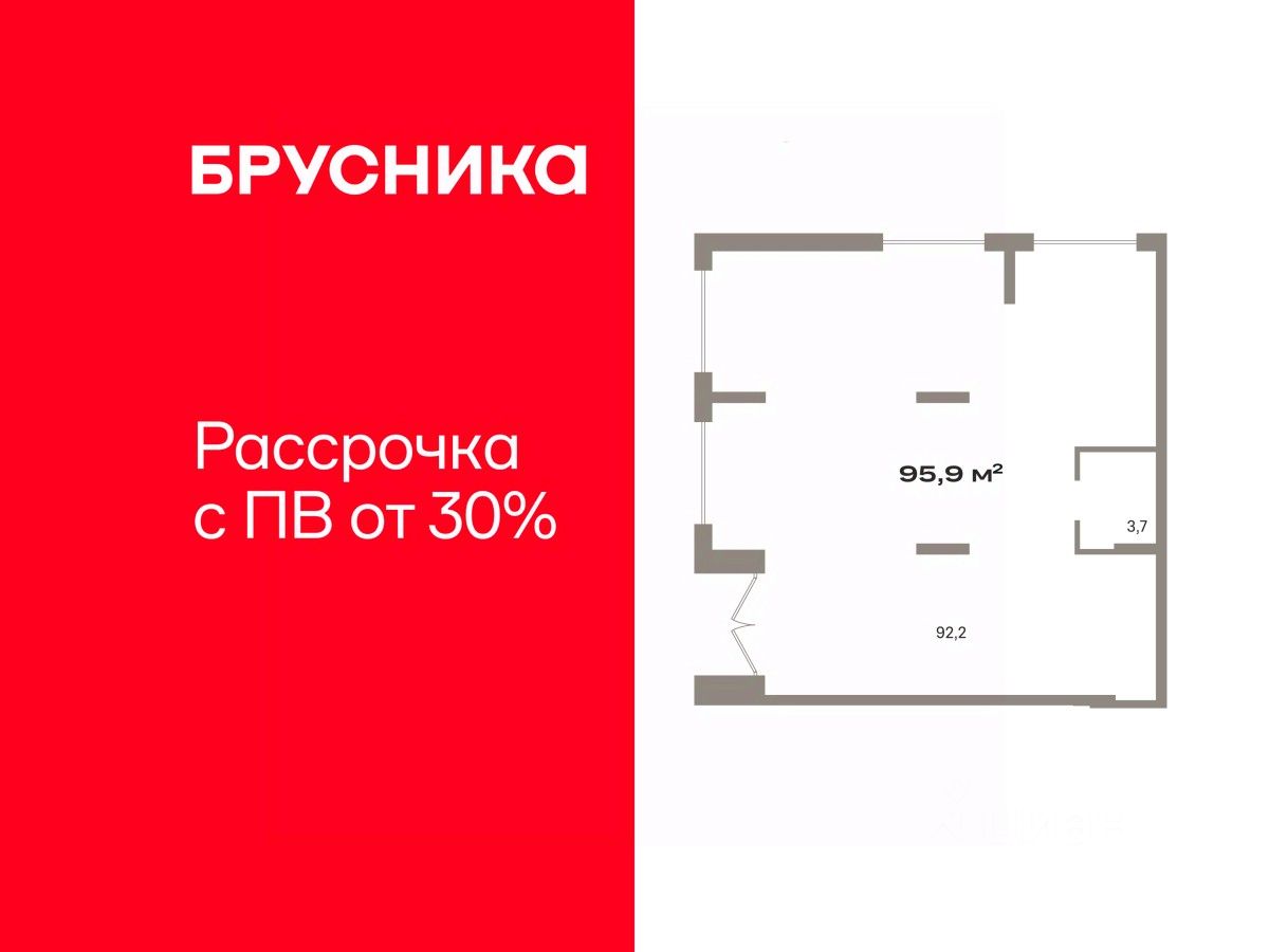 Помещение свободного назначения на 1 этаже, общая площадь 95.9 кв.м., без отделки. Стоимость помещения 21,750,000 руб., цена за кв.м 226,798 руб.