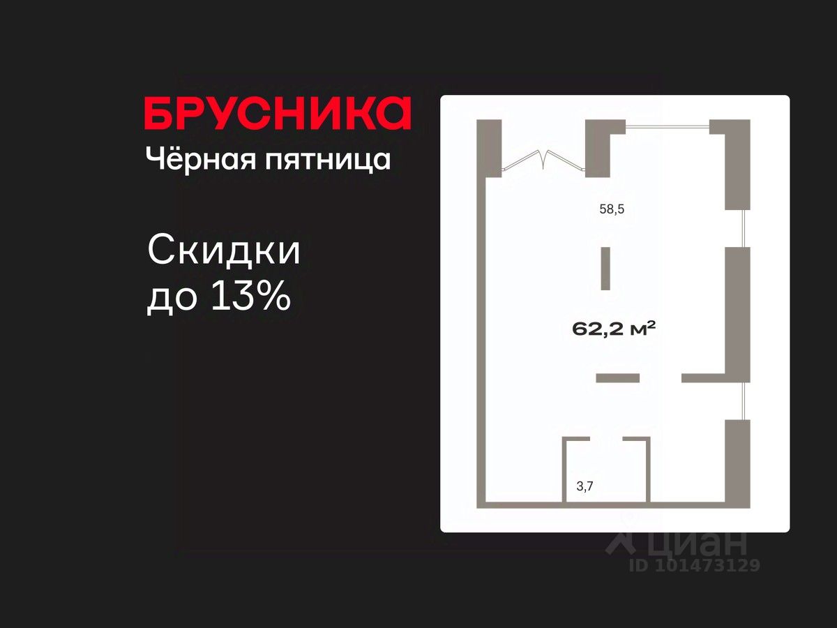 Помещение свободного назначения на 1 этаже, общая площадь 62.22 кв.м., без отделки. Стоимость помещения 14,330,000 руб., цена за кв.м 230,311 руб.