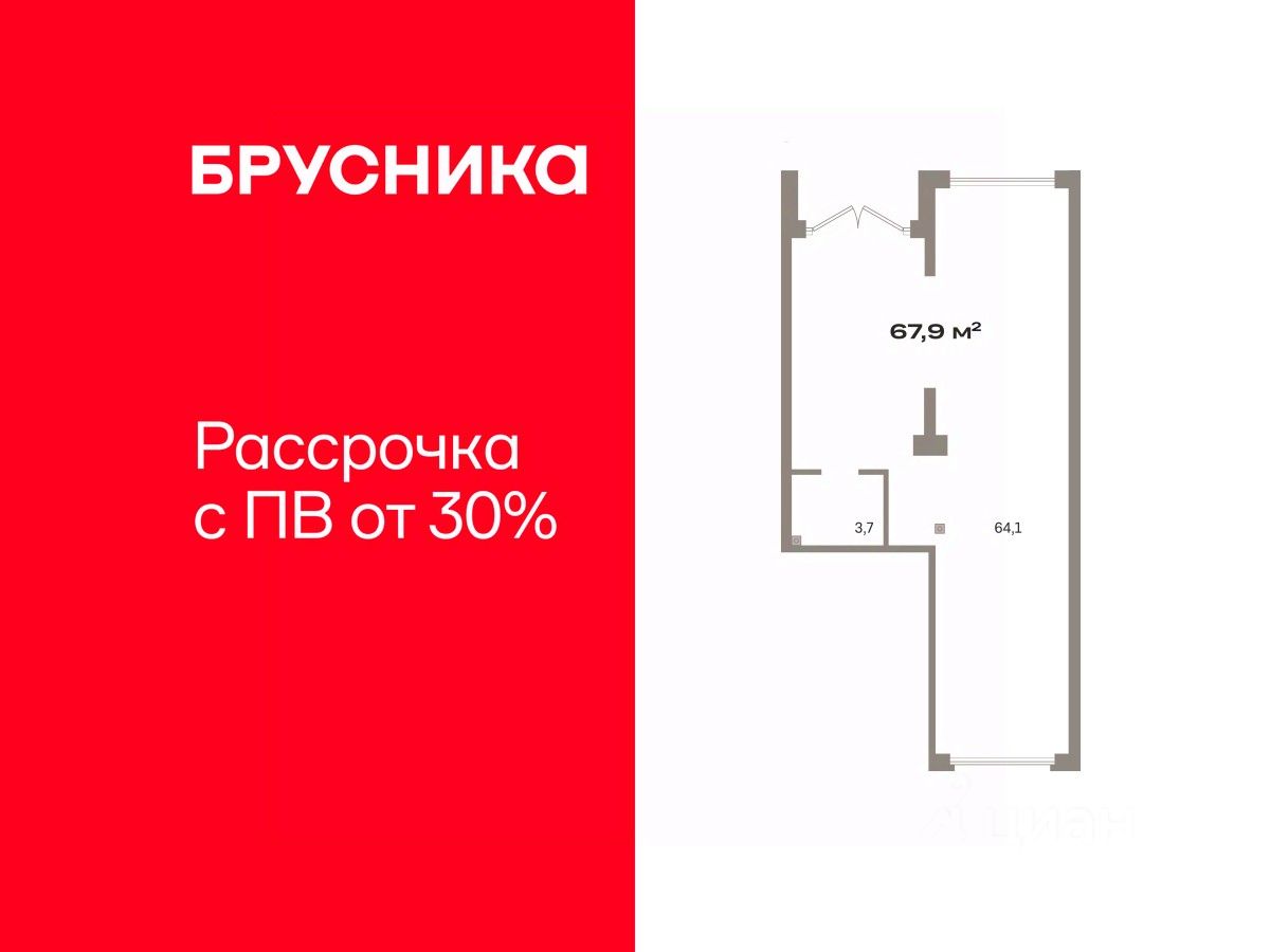 Помещение свободного назначения на 1 этаже, общая площадь 67.86 кв.м., без отделки. Стоимость помещения 14,020,000 руб., цена за кв.м 206,601 руб.