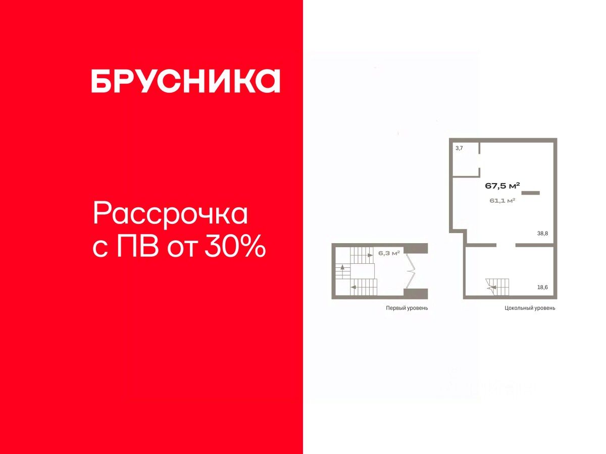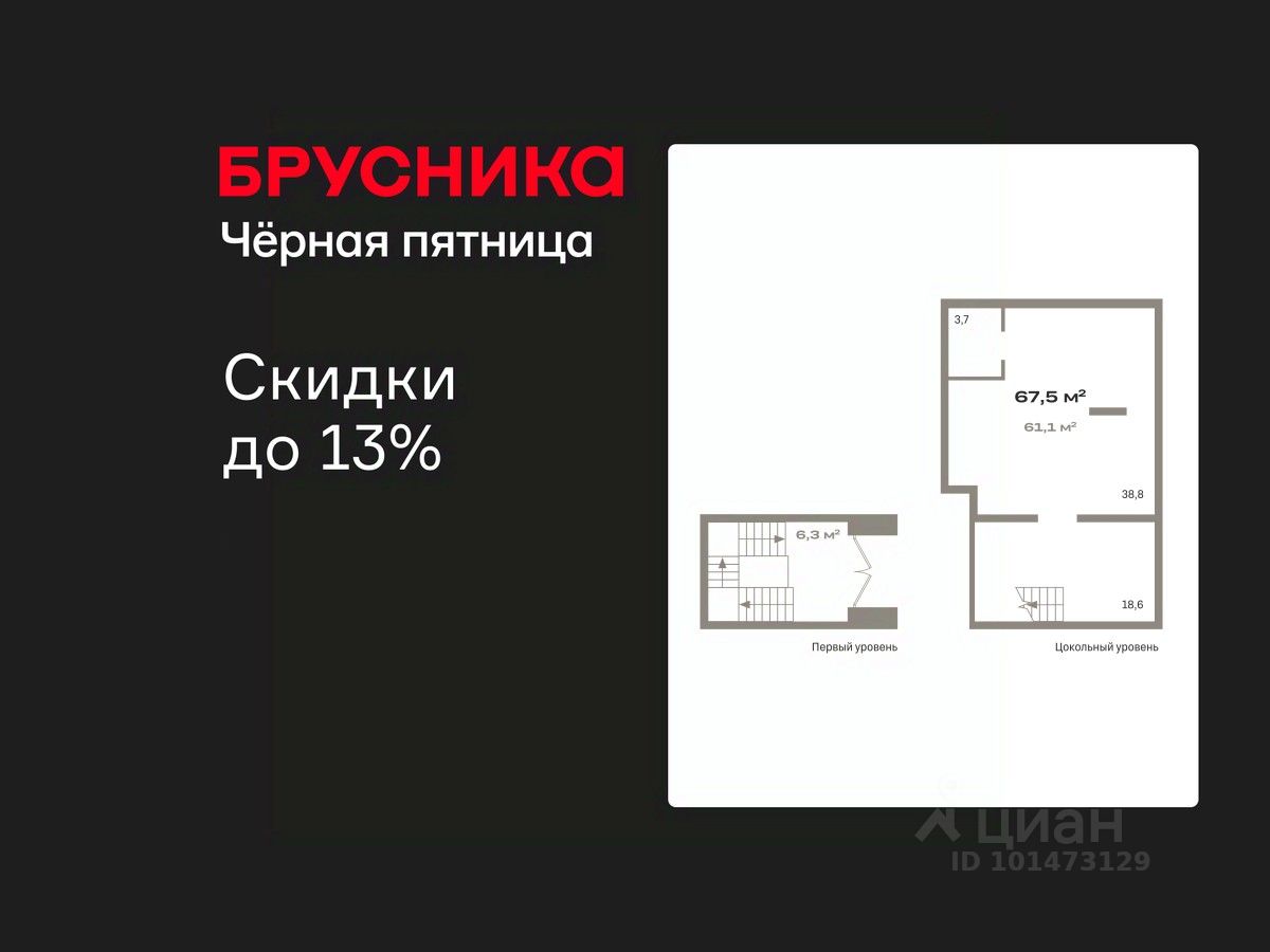 Помещение свободного назначения на -1 этаже, общая площадь 67.45 кв.м., без отделки. Стоимость помещения 12,390,000 руб., цена за кв.м 183,691 руб.