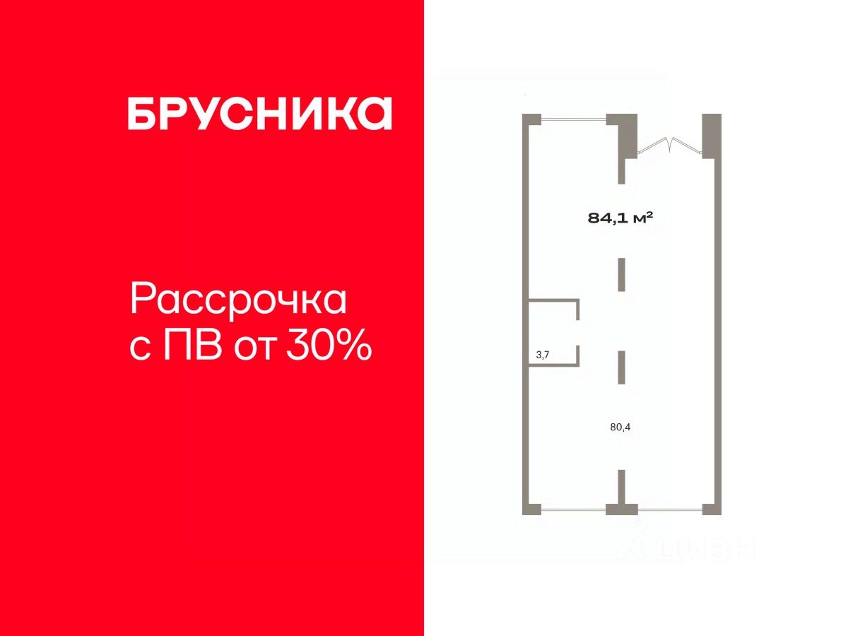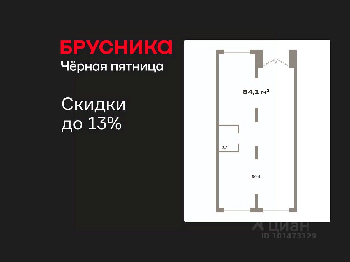 Помещение свободного назначения на 1 этаже, общая площадь 84.14 кв.м., без отделки. Стоимость помещения 19,170,000 руб., цена за кв.м 227,834 руб.