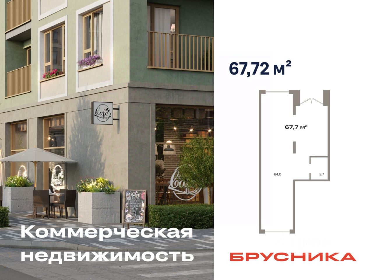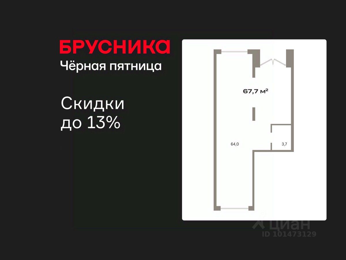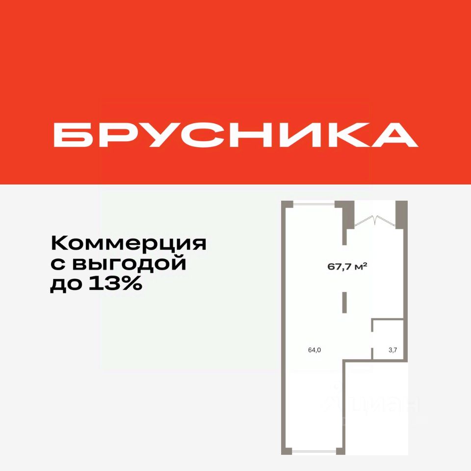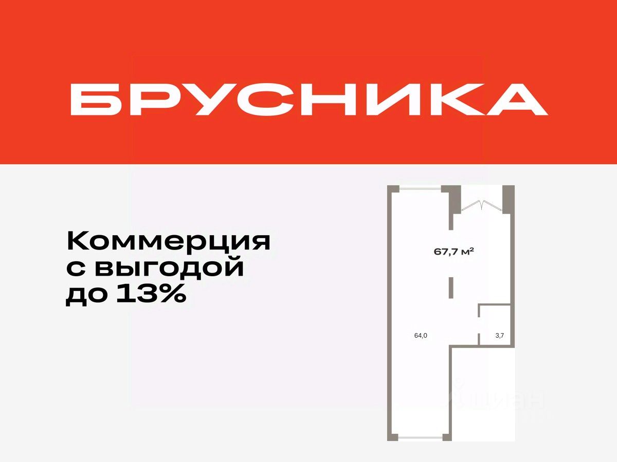 Помещение свободного назначения на 1 этаже, общая площадь 67.72 кв.м., без отделки. Стоимость помещения 15,550,000 руб., цена за кв.м 229,621 руб.