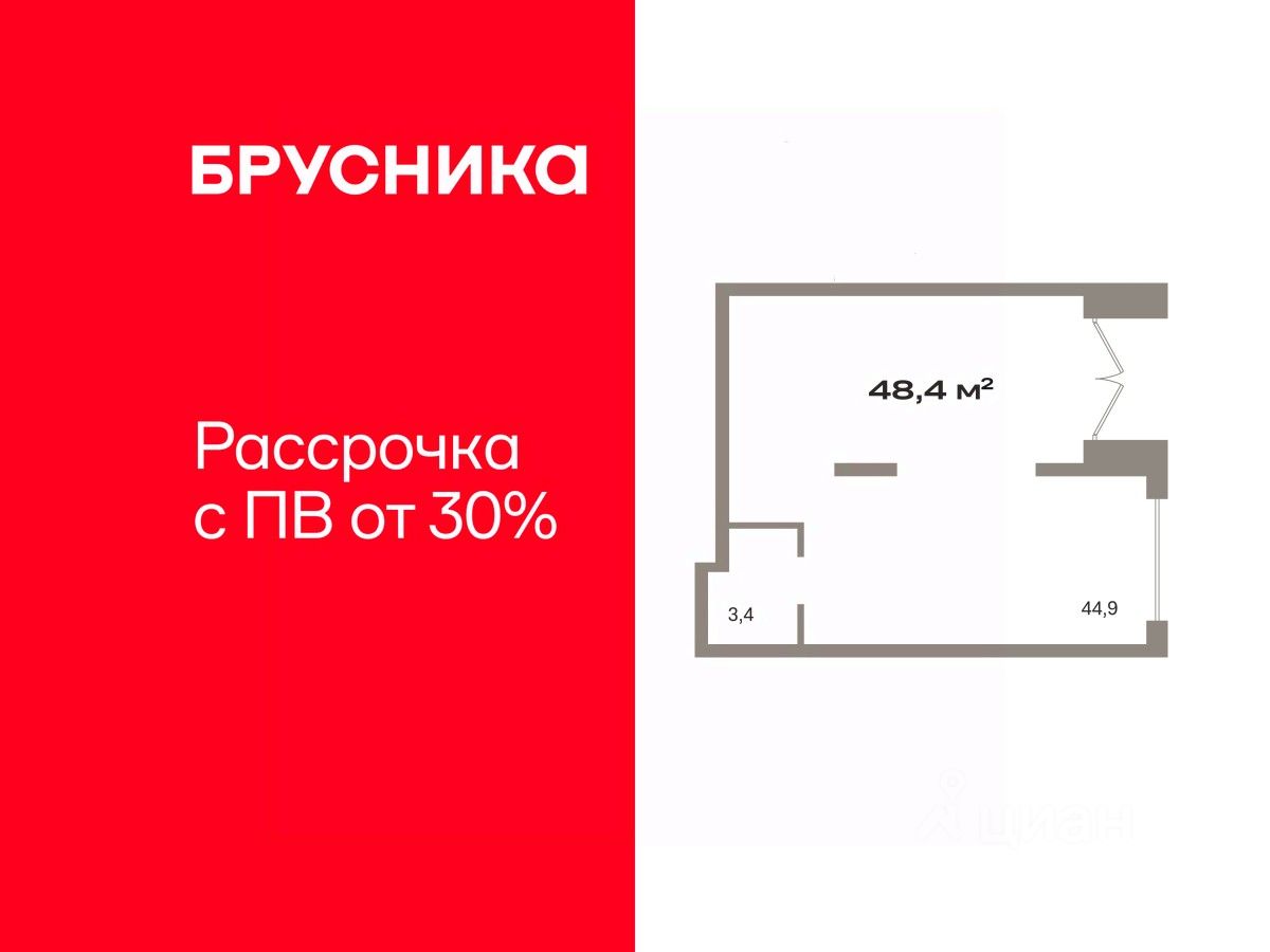 Помещение свободного назначения на 1 этаже, общая площадь 48.35 кв.м., без отделки. Стоимость помещения 11,230,000 руб., цена за кв.м 232,264 руб.