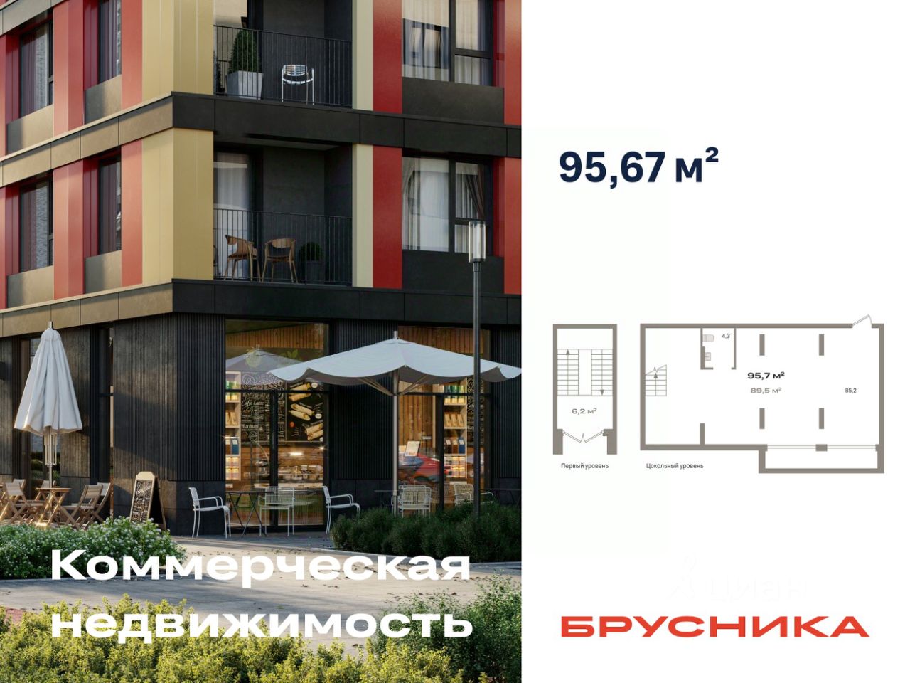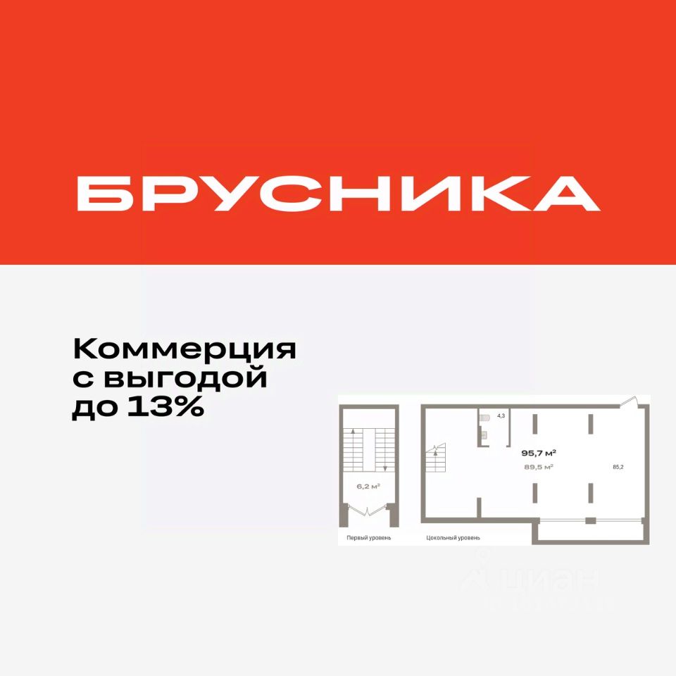 Помещение свободного назначения на -1 этаже, общая площадь 95.67 кв.м., без отделки. Стоимость помещения 17,970,000 руб., цена за кв.м 187,833 руб.