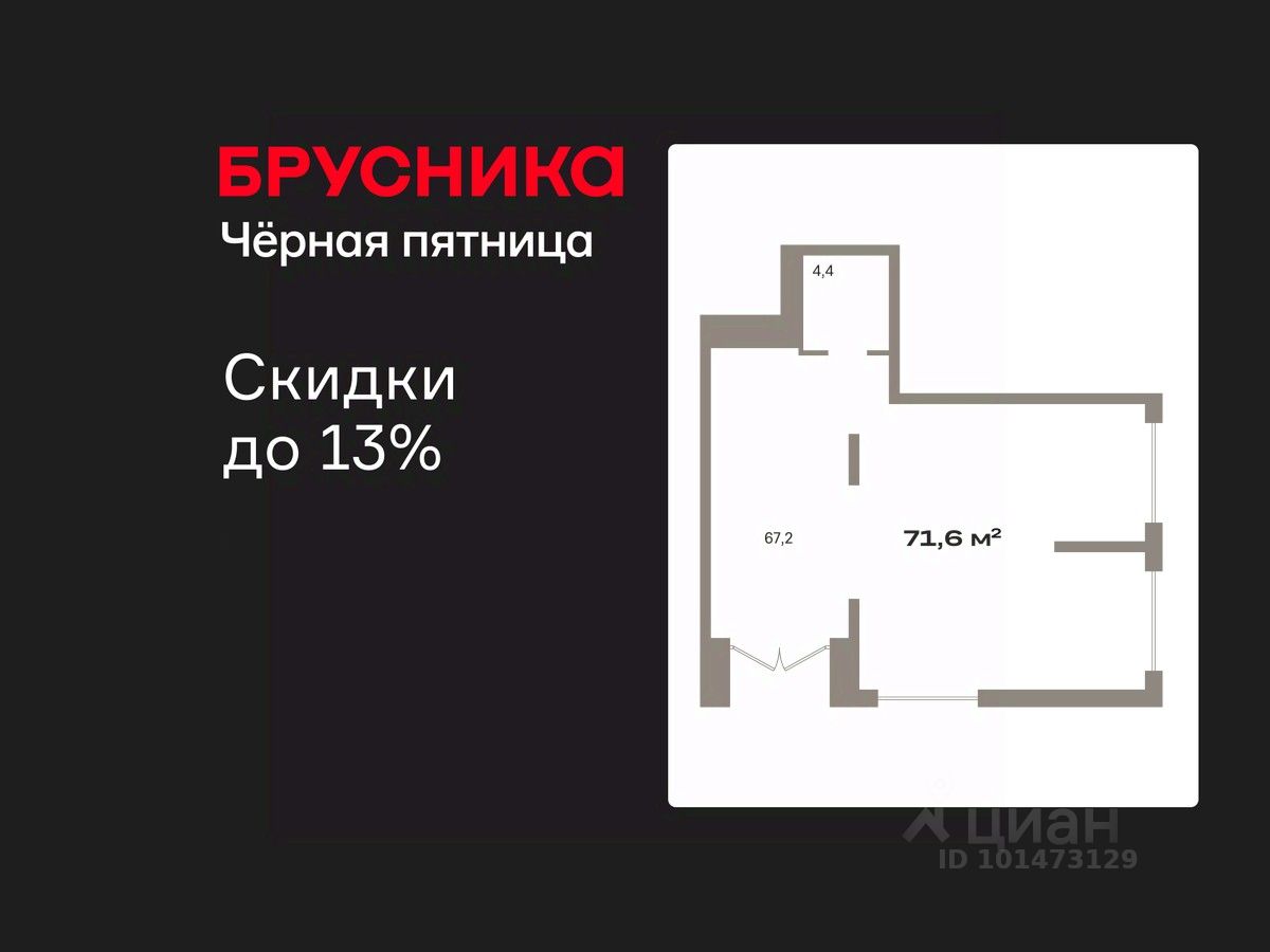 Помещение свободного назначения на 1 этаже, общая площадь 71.58 кв.м., без отделки. Стоимость помещения 16,400,000 руб., цена за кв.м 229,114 руб.