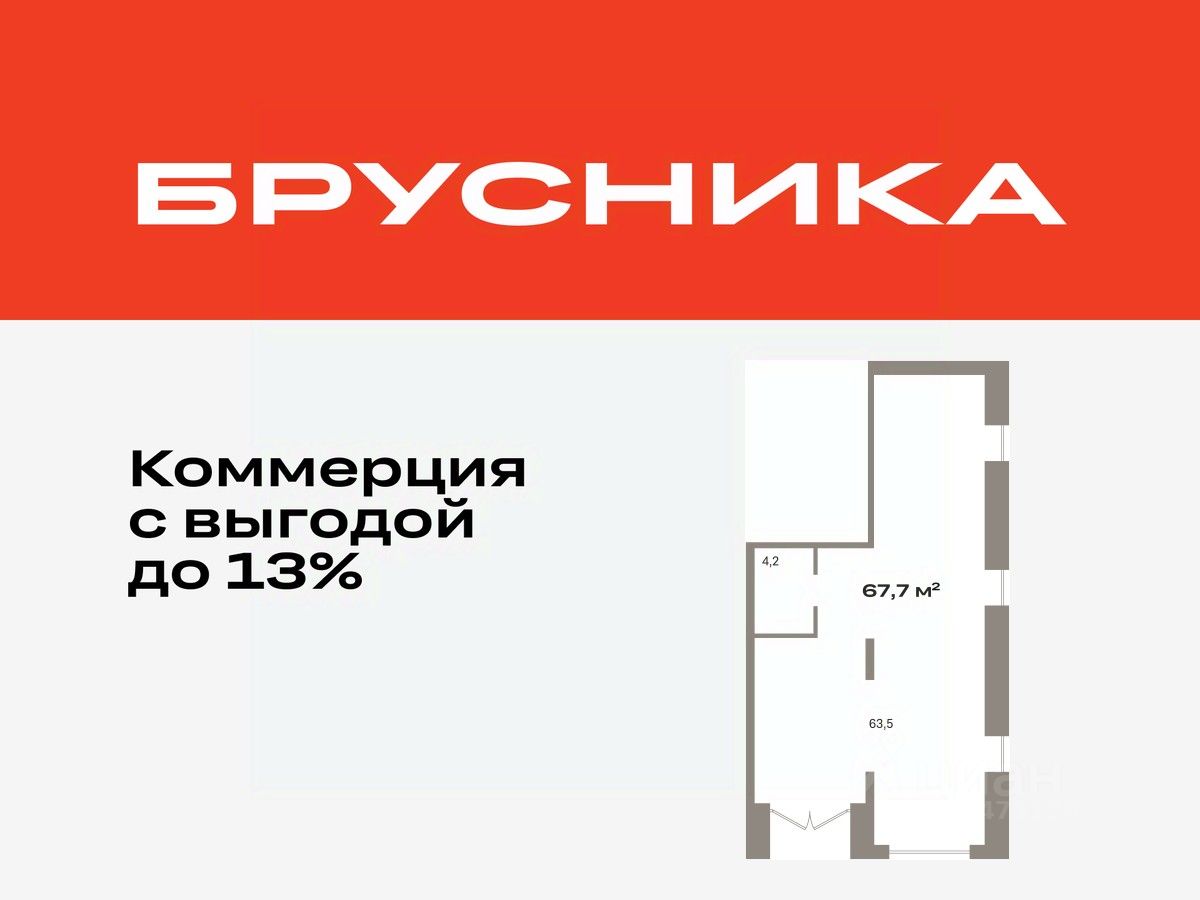 Помещение свободного назначения на 1 этаже, общая площадь 67.69 кв.м., без отделки. Стоимость помещения 15,540,000 руб., цена за кв.м 229,576 руб.