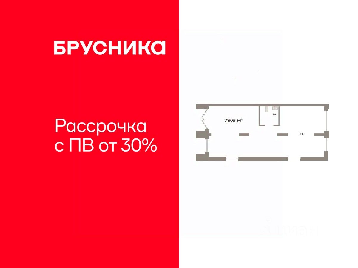 Помещение свободного назначения на 1 этаже, общая площадь 79.62 кв.м., без отделки. Стоимость помещения 20,910,000 руб., цена за кв.м 262,622 руб.
