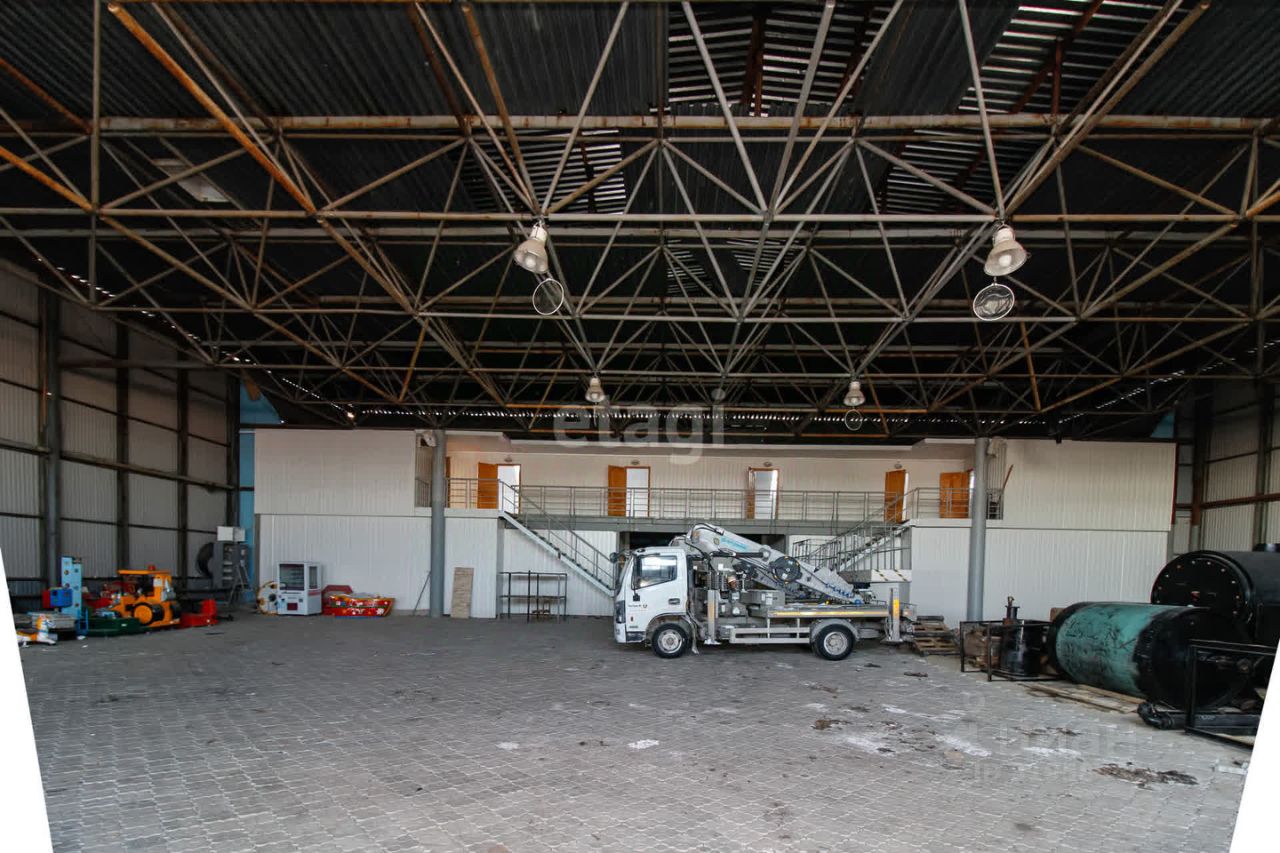 На участке расположен теплый склад-арочник площадью 950 кв.м. ( газовое отопление, установлен газгольдер). Потолки высотой 8 м., два входа, ворота для въезда техники высотой 4 м. В арочнике встроено административное помещение в 2 этажа, на 1 этаже два кабинета по 40 кв.м. с высотой потолков 2,8 м. , на втором этаже 6 кабинетов по 14-20 кв.м. потолки 2,5 м. Также в помещении имеется отгороженное место для складирования. Отведенная мощность 40 кВт. На участке пробурена скважина для водоснабжения, водоотведение-септик.Вокруг ангара имеется место для размещения открытого склада.Участок огорожен капитальным забором.