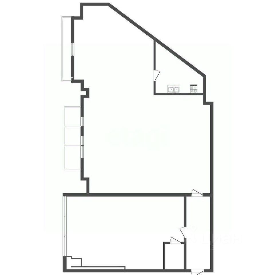 Помещение разделено на две изолированные части, которые можно объединить, что делает его гибким для различных бизнес-задач — от размещения офиса компании до сдачи в аренду под коммерческие проекты.