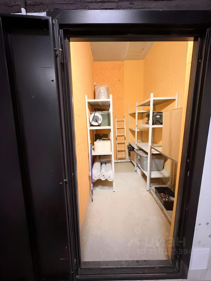 Продаётся кладовая в подвальном помещении высокие потолки 5.9 кв.м. установлено 4 новых стеллажа размером 200*50.
