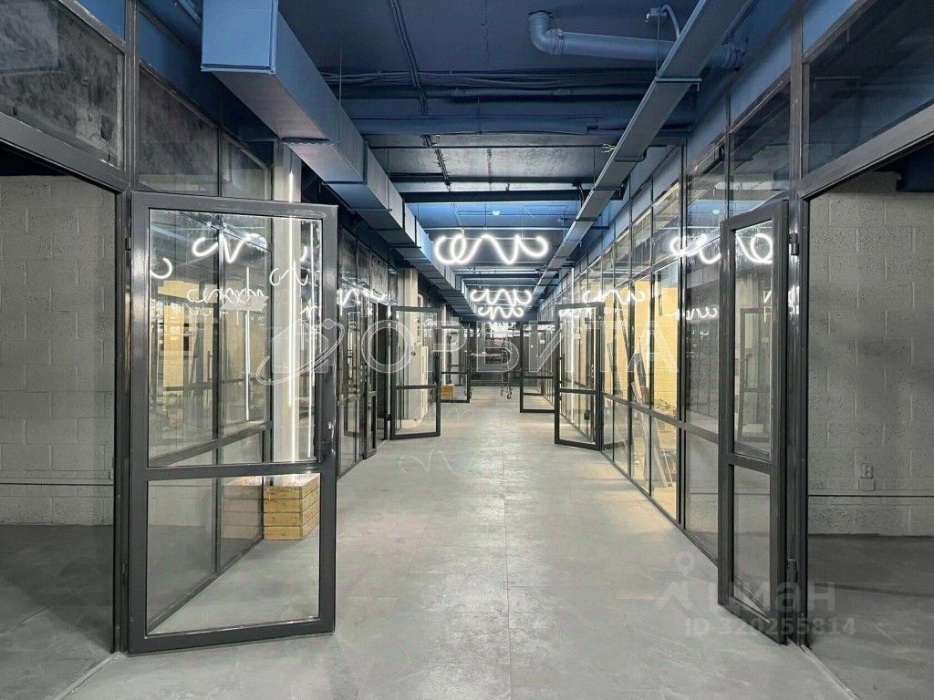 Пoмeщeниe нa цокольном этaжe отдельно стоящего торгово-офисного здания. На полу — плитка, потолок покрашен в темно-синий матовый цвет. В помещении установлена пластиковая дверь с витражными стеклами. Окон нет. Есть приточно-вытяжная вентиляция. В местах общего пользования дизайнерский ремонт. На данный момент в помещении производится ремонт.