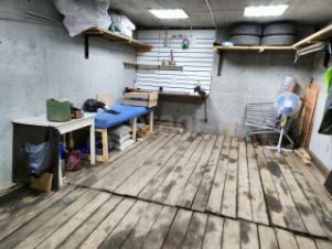 Гараж сухой. Подойдет для чего угодно, как для хранения автомобиля, так и для хранения различных бытовых вещей. Два замка + распашные железные двери.