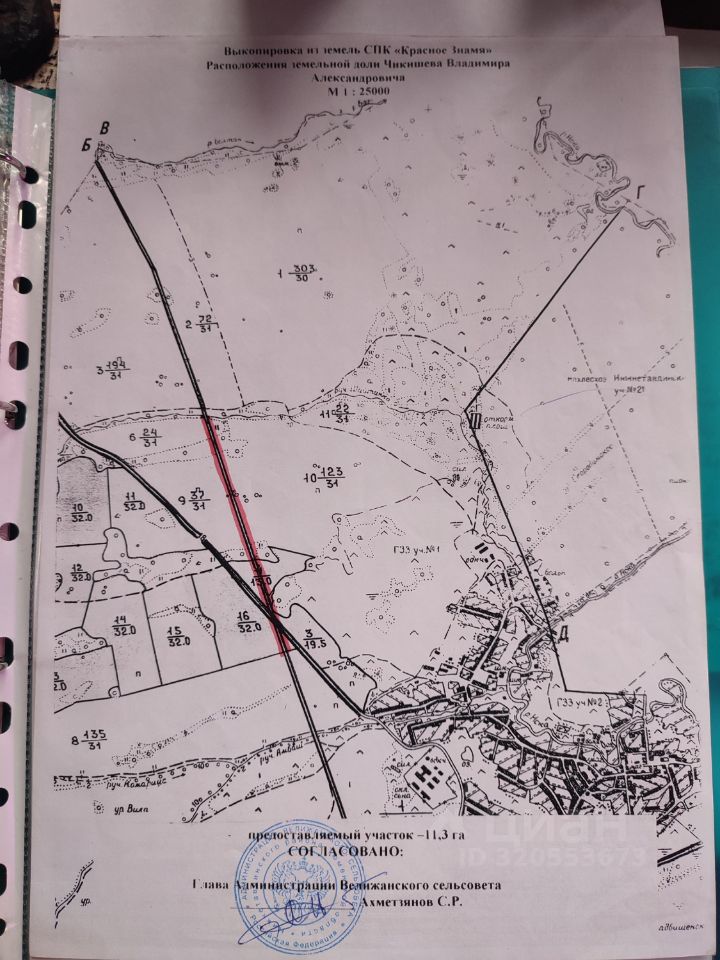 Возможна продажа по доверенности для дальнейшего оформления земли. Участок находится на землях СПК "Красное знамя"