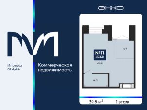 Помещение свободного назначения на 1 этаже, общая площадь 39.6 кв.м., с отделкой.Окна выходят во двор. Стоимость помещения 10,505,000 руб., цена за кв.м 265,277 руб.
