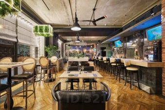 * Просторный зал с барной стойкой на 7080 посадочных мест (110 кв. м), возможность выделить приват-зону.