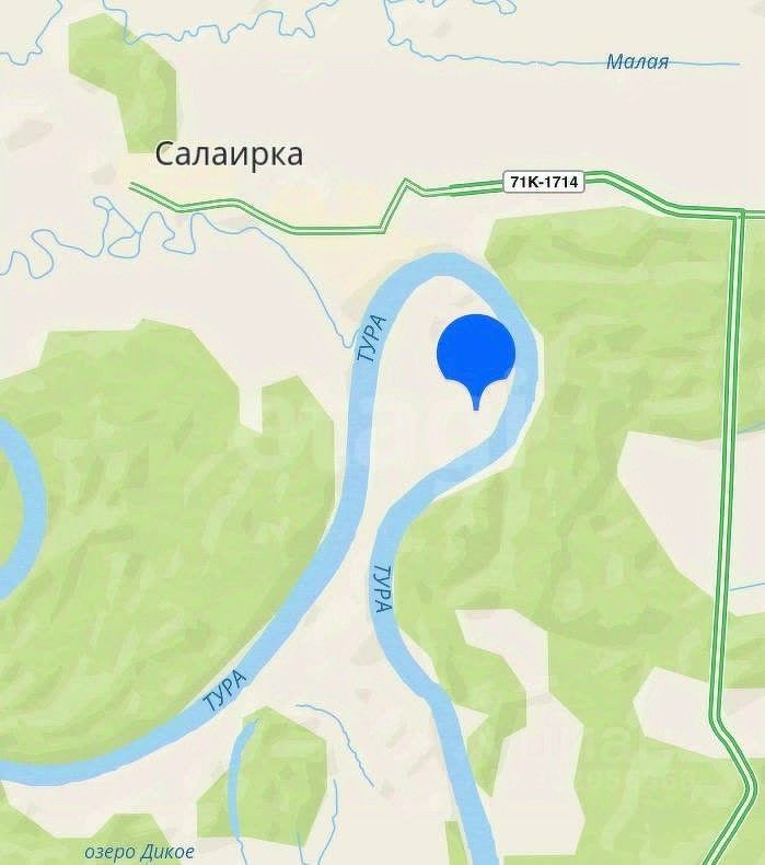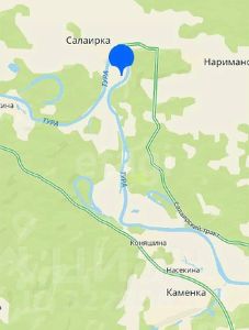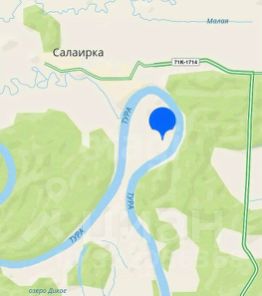 напротив села Салаирское (через реку), с заездом со стороны д. Речкина по Ирбитскому тракту. Рядом активно развивается коттеджный посёлок "Озёрный".