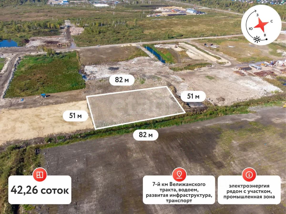 Продается участок промышленного назначения площадью 43 сотоки расположен в стратегически важной точке на 7-м км Велижанского тракта, непосредственно у черты города.
