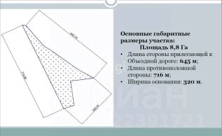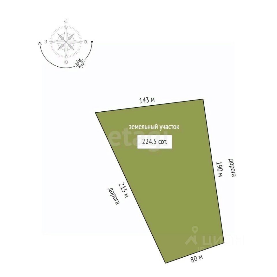 Земельный участок, площадью 225 соток. Категория земли: земли населенных пунктов. Вид разрешенного использования по документам: для ведения личного подсобного хозяйства. Форма участка: клиновидная, утолщенная к основанию (вытянута вдоль Объездной дороги). Возможность застройки до 15 000 м² и размещения паркинга до 800 машиномест, при условии приобретения дополнительного соседнего участка. Данный земельный участок идеально подойдет для размещения торгово-развлекательного центра.
