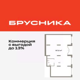 Помещение свободного назначения на 1 этаже, общая площадь 97.46 кв.м., без отделки. Стоимость помещения 21,020,000 руб., цена за кв.м 215,678 руб.