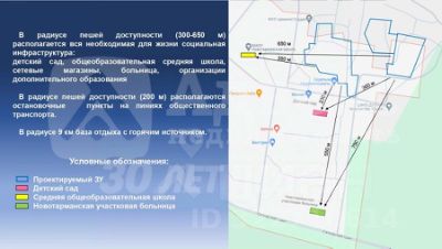 Развитая инфраструктура района : Все в шаговой доступности , детские сады, школы, больницы, сетевые супермаркеты и учреждения дополнительного образования. Для удобства жителей предусмотрены автобусные маршруты, обеспечивающие оперативную связь с городом.