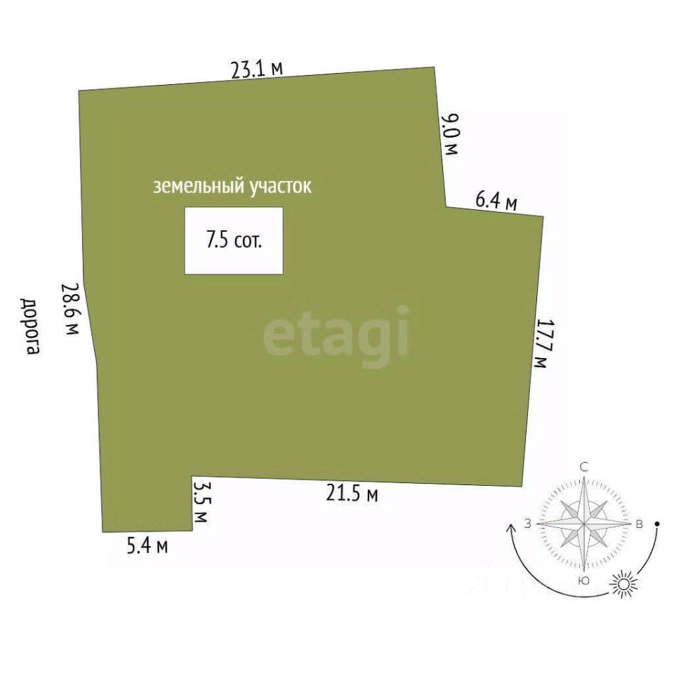 - Площадь: 7,54 соток