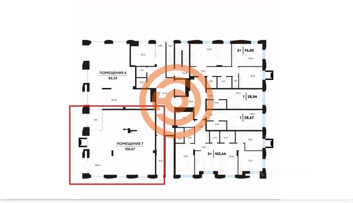 Имеется возможность объединить с соседнем помещением на 86 м2.