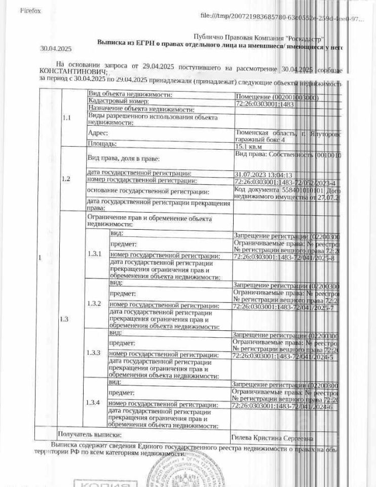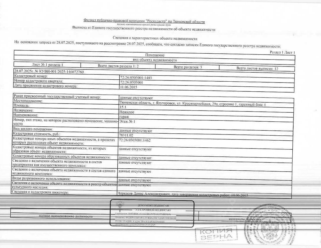 Должник: ИП Чиж М.К., собственник: Чиж М.К. Лот: Нежилое помещение (гараж), площадь 15,1 кв.м., кадастровый номер: 72:26:0303001:1483, г. Ялуторовск, ул. Красноармейская, 29а, стр. 1, гаражный бокс 4, н/ц: 201000р., з-к: 30150 р, код: 0001, рег. 72-010301;
