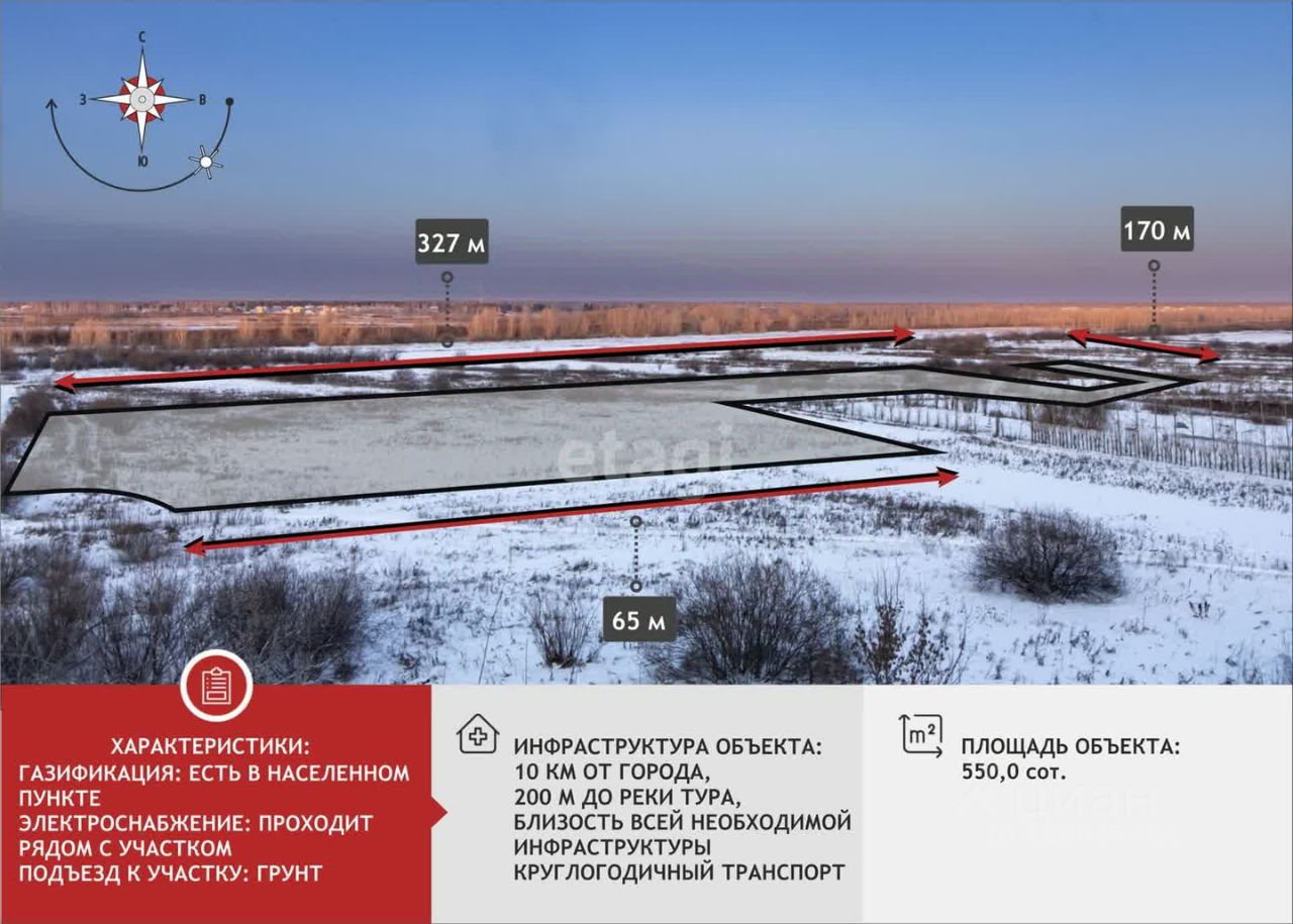 Участок находится вдоль живописной реки и идеально подходит для размещения базы отдыха или загородного дома, где можно наслаждаться уютным отдыхом на природе. В поселке Луговое имеется развитая инфраструктура, включая продовольственные, хозяйственные и строительные магазины, детский сад и школа, лыжная база и прокат лошадей, а также культурно-досуговый центр с различными развлечениями. Окружённый сибирскими лесами, озерами и рекой Турой, поселок Луговое станет идеальным местом для жизни и отдыха.
