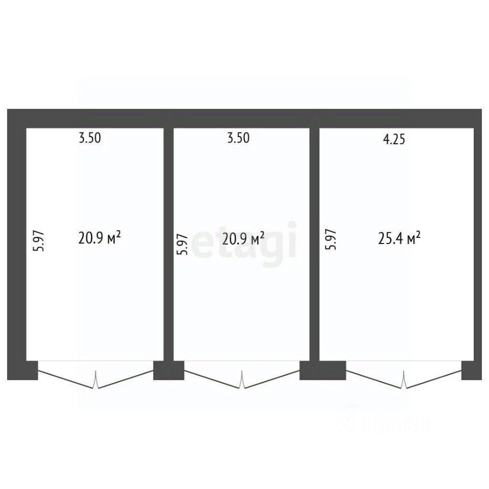 20,9 м² (2 помещения) + 25,4 м² (1 помещение).